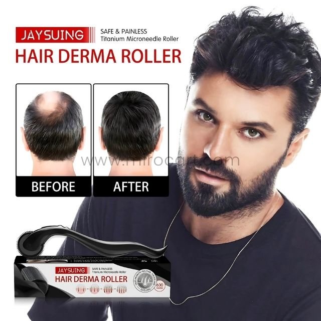 Struggling with thinning hair? The advanced hair derma roller is here to help. Featuring 600 titanium needles, it stimulates follicles and boosts blood flow for 80% faster growth and 240% thicker hair . Perfect for both men and women, it tackles bald spots, thinning strands, and uneven hairlines effortlessly. Safe, painless, and easy to use at home—simply roll vertically, horizontally, and diagonally 2-3 times weekly on clean skin. For even better results, pair it with your favorite serum or oil to enhance absorption. Backed by science, this innovative tool delivers visible results in weeks—your solution to healthier, fuller hair is here!