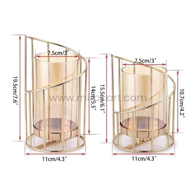 - Sizes: Tall (7.6”h) + Short (6.1”h) – Fits candles ≤3” wide (pillar, LED, tea lights).