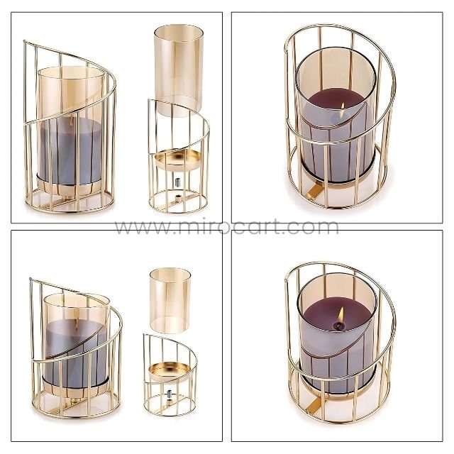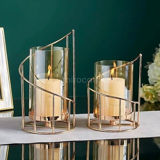 Be the first to review “Golden Pillar Candle Holder – Spiral Metal Design with Windproof Glass Cover for Wedding & Home Decor” Cancel reply