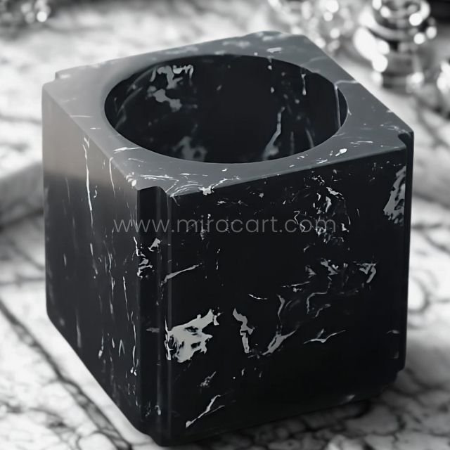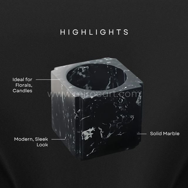 Be the first to review “Modern Black Marble Vase – 6” Geometric Cube Decor with White Veining”