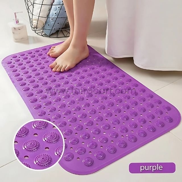 Step into safety and comfort with this non-slip massage bathtub mat. Designed with 66 raised massage dots, it gently stimulates your feet while offering secure traction in wet areas. The 194 suction cups ensure it stays firmly in place, even under running water. Made from soft, mold-resistant PVC, it’s gentle on skin and easy to clean — simply toss it in the washing machine. Drainage holes help water escape fast, reducing slip risks and keeping the surface dry. Measuring 70x40cm, it fits most standard bathtubs and showers. A simple, stylish upgrade for safer, more relaxing bathing moments.